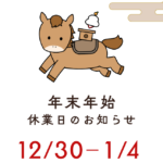 - 年末年始の営業のお知らせとも薬局は、12/30(火)~1/4(日)までお休みとなります。